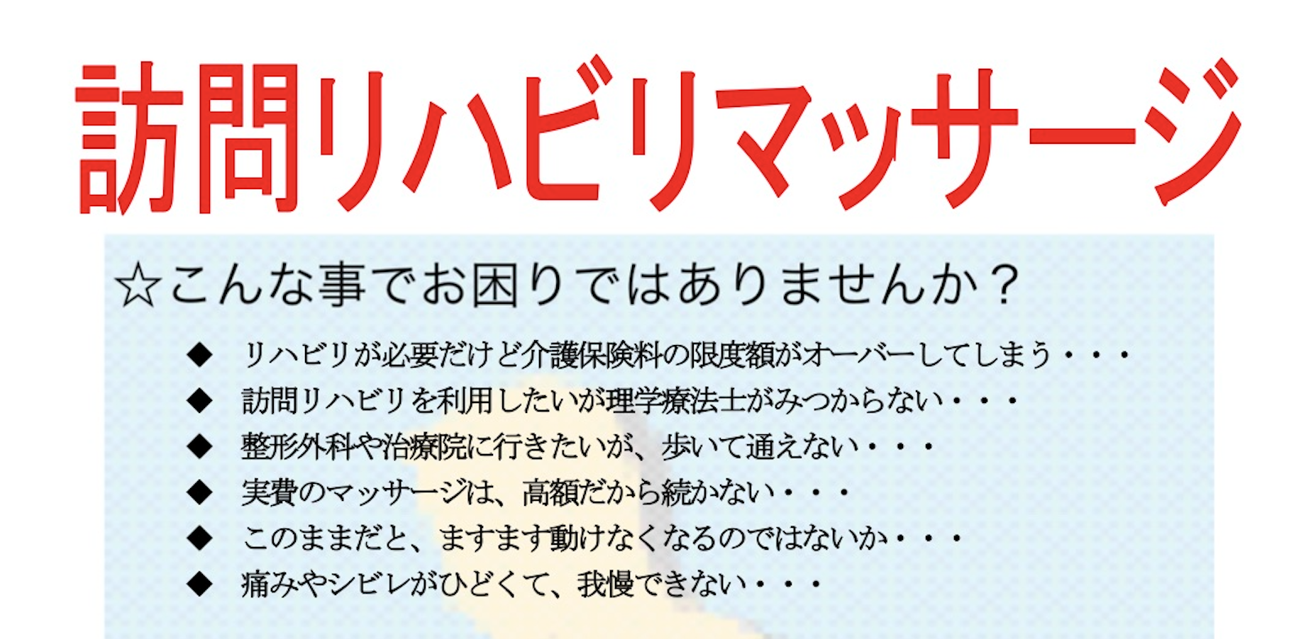 ご家族、親族で医療マッサージやリハビリが必要でしたら